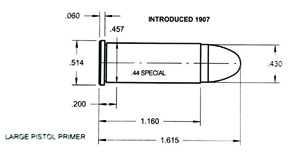 However, the case capacity of the Russian was simply too small to make best use of this new chemical wonderment. Whilst S&W continued to catalogue a 246 grain load as well as 11 5grain target option until the beginning of the first World War, they were forced to remodel the cartridge design. The revised .44 S&W Special surfaced in 1907 followed a year later by their S&W New Century revolver. Colt quickly realised the potential of the cartridge and introduced a chambering too. The most significant dimensional change being an approx increase of 0.19” in the case length. The added benefit was the fact that these new revolvers could also chamber the older Russian cartridge.