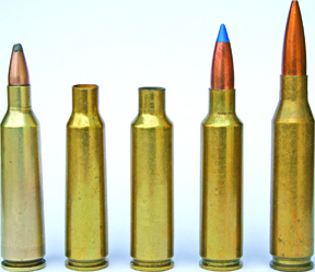 The parent case was the venerable old .250 Savage, which later became more widely recognised as the parent for the excellent 22-250 cartridge. The original case holds nearly 45 grains of water whilst the improved version with its straight walls and 40° shoulder angle holds 51, which is a big improvement!