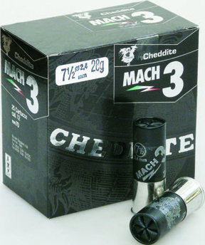 Testing the 28g variety the speeds were 1,338fps with an actual observed mean of 1,213fps whilst patterning produced an even 89% concentration. A noticeably punchy round the Mach 3 is best suited to the more demanding sporting shooter looking for a cartridge that can noticeably reduce the amount of required lead combined with clean, concise kills out at forty yards or as ammunition held in reserve for the more difficult, long range or high speed clays. Best suited to a heavier style of sporting 12 bore, whilst shooting the Mach 3 exclusively could prove tiring, as a high performance second barrel load or a shall held in reserve for distant or fast disappearing targets, the Mach 3 is an ideal cartridge to have to hand.