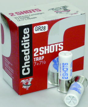 An idea usually reserved for heavy, wildfowling type loads Cheddite’s 2Shot is an unusual concept for competition purposes and brand new to the Cheddite competition range. Available in both 24g and 28g each cartridge is filled with an even mixture of 7’s and 7½’s, 7’s and 8’s and especially for the skeet shooter 9½’s and 10’s. The idea behind the concept is to give the shooter an elongated shot string as the overall pattern develops, the larger of the two shot sizes eventually making their way to the front of the pattern, the smaller shot’s earlier depleting energy causing them to fall back.