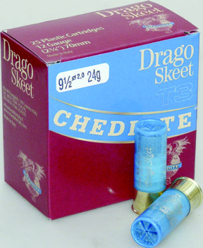 Whether you shoot the English or Olympic versions of skeet, Cheddite’s Drago T3 load could well prove to be the ideal load for the both. Presented in a distinct red and blue carton these plaswad loads are available only in 24g size and filled exclusively with 9½’s, the preferred shot size of most skeet shooters.