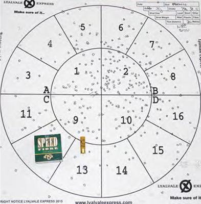 Firstly, in the Xplor, the NSI shot very smoothly with no feeding or ejection problems and judging from the report to hitting the pattern boards, this is a fast load, also indicated by the MAX dram loading to the side of the case, our Italian friends like it hot!