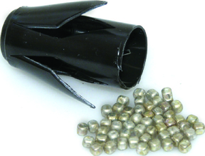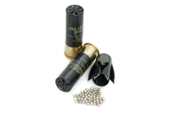 Beneath the shot cup sits the Hinged Drylok Wad that covers the 2-44 grams of grey/black granulated powder, the term hinged referring to the compressible centre section that to a degree softens the effect of these powerful cartridges against the shooter.