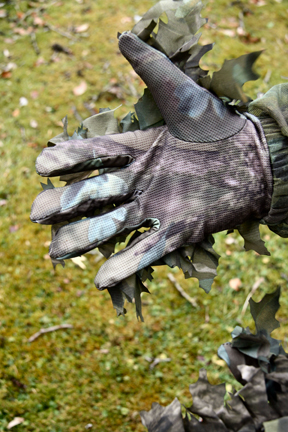 Both items are generously cut as befits lightweight over-wear. The gloves don’t hinder trigger use in the slightest. They use the light-leaf cut on the outer side only with the inner having a slightly raised palm dot grip. They are so light and tactile most won’t need to cut the tip of the trigger finger, whilst the extended, stretch-fit cuffs offer an ideal amount of camo material to go under or over the sleeve. Which negates the bare white patch of wrist that often shows unless the garments offer a full cover up.