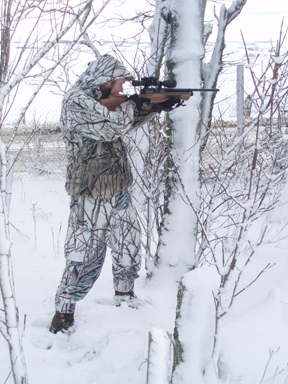Not only is the snow suit extremely warm it is exceptionally waterproof, even when lying in melting snow that has turned to slush - as I did on numerous occasions. I also had the misfortune to get caught out in a blizzard in soft snow that clings to clothing and capable of soaking through the best of coats, but when I arrived home after several hours fighting through the blizzard I was still bone dry and as warm as toast in the snow suit. As to the effectiveness of the snow suits camo pattern, they say a picture is worth a thousand words so I shall let the pictures do the talking and I think you’ll agree that they fully illustrate that in this suit it is possible to completely merge with a snowy environment. This incredible suit - capable of dealing with serious artic conditions - can be added to your hunting wardrobe for just £149.50, and if the winters continue in the pattern shown this year it is a must have piece of kit.