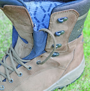 This feel continued stalking through light bramble and scrub in dry woodland, the delicate sole giving a quiet foot-fall and tactile feel. The sole never dragged brambles onto its edges and stalking progression was appreciably quiet. When it came to awkward footings or positional shots requiring kneeling, the flexibility, especially in the toe area shone through, they just had the `slipper feel`. Breathability was unquestionably excellent with no signs of any water intrusion or damage to either upper or sole in nine months. Flexibility in the toe can lead to separation of the outer and lining membrane in some boots but NOT here!