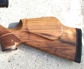 STOCK: Walnut sporter with high roll over cheekpiece, laser chequering, contrasting rosewood grip cap and forend tip