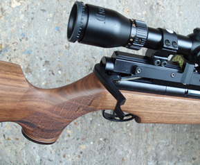 The stock for this model was in walnut, although beech should be available at a reduced price. We haven’t got the prices of the various models at time of press, however, for the S400/410 series, the difference between walnut and beech models was fairly small. So if you can afford it, I’d go for the walnut sporter with its laser chequering and contrasting rosewood grip cap and forend tip.