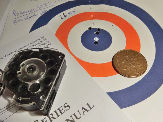 When filling the magazine, I found it best to seat the first pellet in order to get it cleanly into position. This then holds the spring-loaded drum in the usual way. It’s not the best designed magazine, as the small, raised stud keeps catching when trying to rotate the cover, but technique plays a part. The magazine was also a little too snug in the breech, but on the plus side, there’s a pleasing, positive click as either the tray or magazine slots into position.