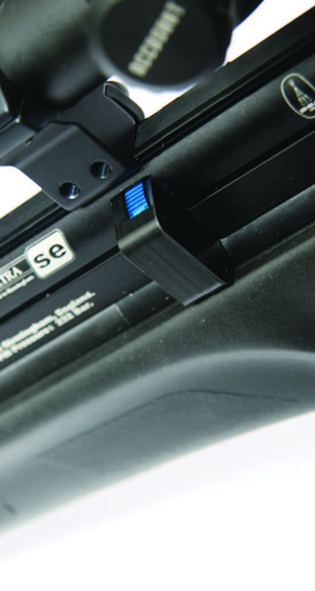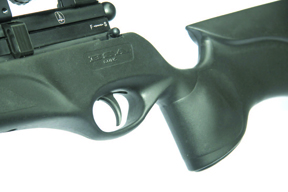 The fully adjustable 2-stage trigger has a curved metal blade that sits in the integral trigger guard. This upgraded unit allows you to attain a very precise level of shot release, and my initial fears of the ‘missing’ thumb channel on the stock adversely affecting trigger control proved to be unfounded.