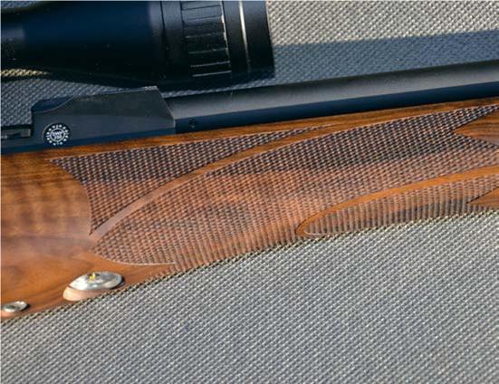 Add in that subtle offset thumb groove and it’s little wonder that handling hits the spot. The thumb falls perfectly for the manual safety catch, if you feel the need, and the firm rocker design works a treat. Look to the forend, and further wrap around chequering means proper grip is afforded. It all looks and feels superb, enhancing both handling and aesthetics. Left-hand versions of the stock are available too, and in these days of ambi everything, that in itself is quite refreshing.