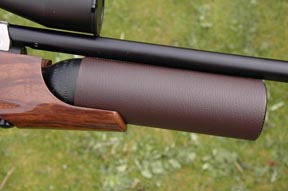Buddy bottle systems often suffer from forcing the shooter to grip cold steel when using the bottle itself as part of the fore-end. No such reservations here though, since Daystate thoughtfully include a brown leather bottle cover as part of the specification - being both warm to the touch and easy on the eye.