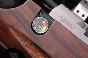 Another major shortcoming of many ‘buddy bottle’ style rifles concerns the issue of charging the system. Daystate remedied this situation from the outset with their standard Air Ranger, so bottle removal is totally unnecessary. Instead, just pull off the metal cap from the inlet valve on the underside of the action, and connect up the air supply. Fill to the tune of 210bar, and this Red Ranger is good to go for around 400 shots in .177 or 500 shots in .22 calibre.