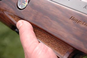 Overall, the beautifully scalloped deep thumb-shelves, perfectly shaped, set-back trigger, and shoulder hugging butt pad, all combine to great effect. Handling is just sublime from this pedigree beauty, ensuring satisfaction from prospective owners who dare to take the Red Ranger form its presentation cabinet!