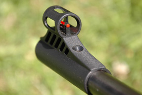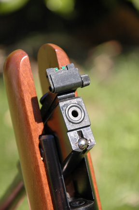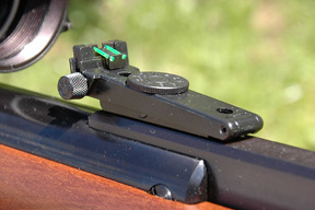 One criticism which is often levelled at this type of standard stocked rifle is that the cheek piece is too low, since it is designed in tandem with the open sights. In the case of this Model 280, and despite coming with those fibre optics sights fitted, I can honestly say that scope alignment seemed fine. If a scope is to be fitted, then it should be noted at this stage, that the plastic fore-sight housing/assembly can be easily removed, once the single Allen screw has been slackened off. Likewise, two small screws keep the rear-sight in place, rendering removal a simple task; so a more uncluttered sightline can be achieved when necessary.