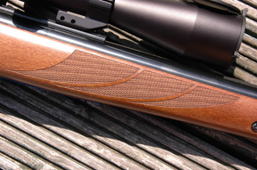 The panels of chequering on the grip and fore-end, are both stylish and extremely effective. Presumably laser applied, the end result has satisfyingly deep cut diamonds, which look and feel right. The neat, rounded fore-end is sublime in the hold, and coupled with a nicely shaped butt pad, basic handling is just about spot-on.