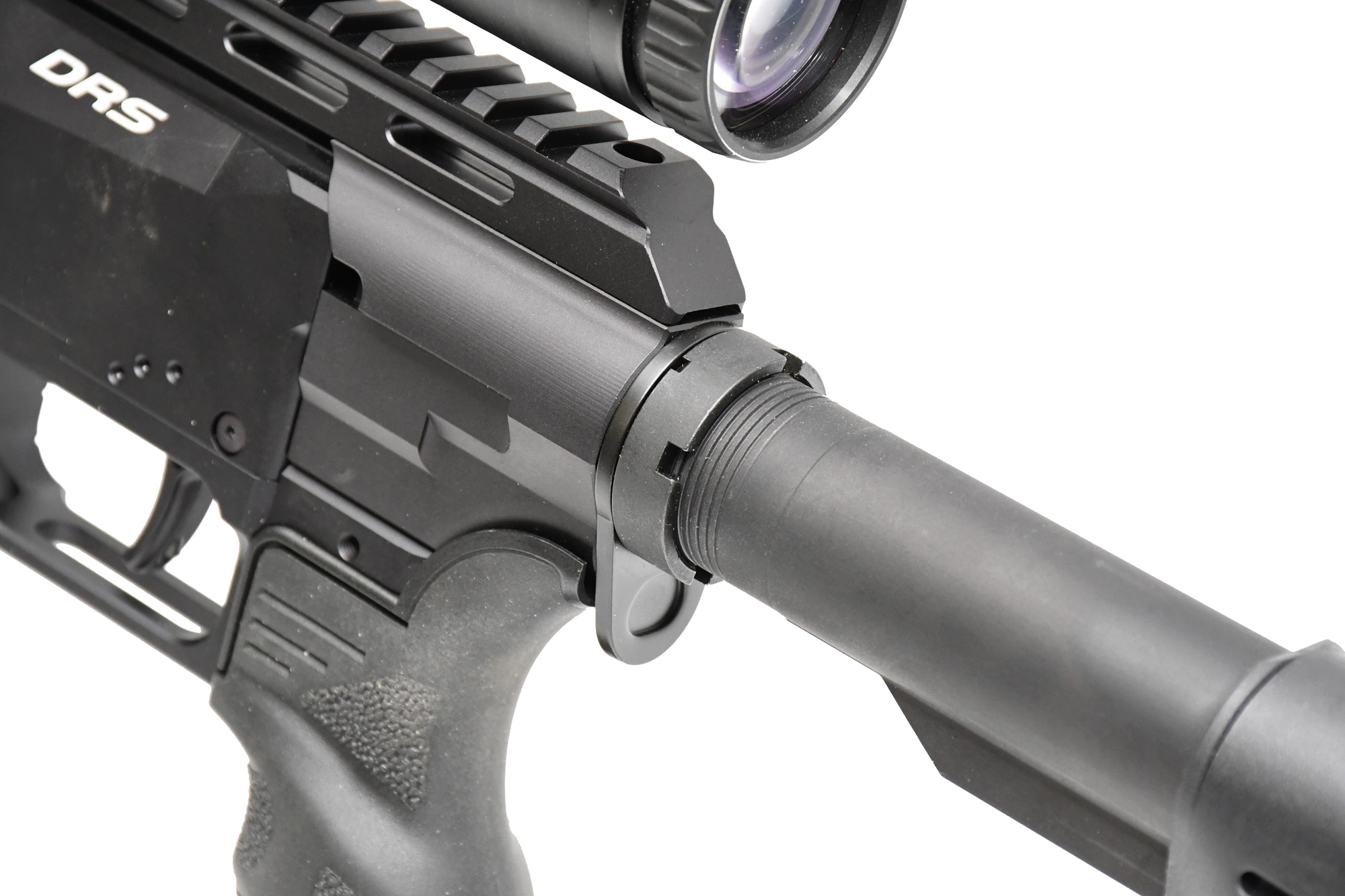 It’s hard to ignore the trend, as many airguns are styled to resemble AR-15s, and some execute this better than others. The DRS Tactical offers one of the most visually satisfying designs in this regard. Its proportions are spot-on, and the 500mm barrel mimics the silhouette of a fully suppressed centrefire rifle. A distinctive underslung plenum chamber, designed to work in conjunction with the AMP II regulator, is fitted within the receiver and visually recreates a .223 magazine beneath the rifle.