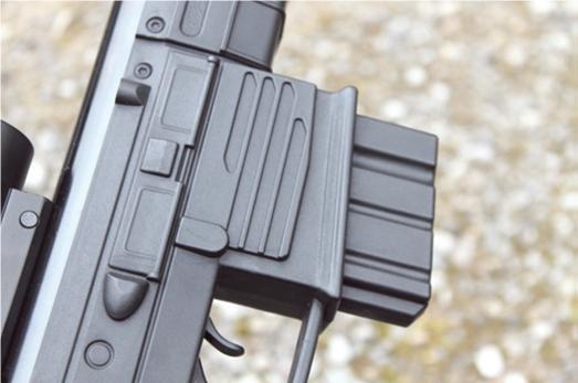 The ACE-like butt stock has a thick rubber butt pad at the rear, but unlike real ARs it is non-adjustable. Do not be put off by that as the gun’s ergonomics are good, the position of the red dot sight can be moved along the long rail to suit all frames and builds. Recoil is minimal with the lower power levels and what there is generated is tamed by the 25mm vented rubber butt pad.