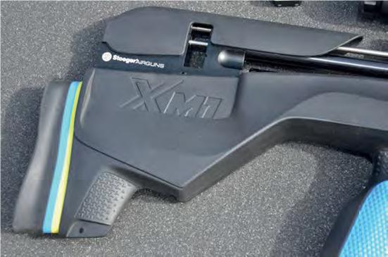 The bullpup configuration obviously needed a new stock and the flowing lines of the ambidextrous ‘Human Tech Design’ synthetic moulding (Stoeger’s sales blurb), sets this model apart in terms of visual appeal. The drop-down pistol grip feels just right for me and the fact that the blue grip can be added is a neat idea, adding further detail to an already ultra-stylish gun. There’s more to it than that though, as it’s all part of the adjustable elements that feature here, which we can now look at in more detail.