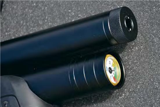 The sizeable cylinder has a 265cc volume and this is coupled with a fairly high fill pressure of 250bar, meaning that we should be looking at a fair old shot count. Charging the system needs either a pump or divers bottle, and the filling adaptor supplied is of the probe variety. Just pull forward the spring-loaded dust cover at the front, insert the airline, and slowly open up the pressure. Then, bleed off and remove the airline.