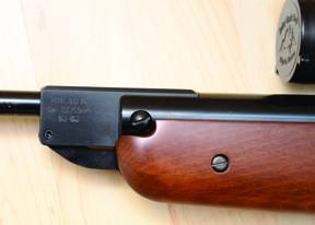 Action wise, the quality of the chemical blueing and wood to metal fit is first class; although Weihrauch still persist in vandalizing their own rifles, with the inclusion of those safety instructions, crudely stamped into the side of the cylinder. This maybe acceptable on a bargain basement starter gun, but not on a serious piece of machinery like the ’80!!