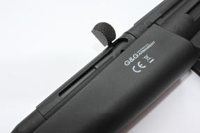 Now there’s a bit of a giveaway in the list above that there’s something a little unusual about this replica; the Pneumatic Blow Back System. G&G go to great pains to make their replicas unique and give them features that you’d find on the “real world” firearm. Now “blowback” functions are nothing new and have been around on various models, but normally most airsofters I know have immediately disconnected the mechanical “tow hook” system which historically has led to the early demise of a gearbox! G&G obviously wanted the “blowback” and their innovative solution uses a patented compressed air system which is piston driven rather than mechanical to avoid putting extra stress on the gearbox. This is a neat system that works very well, and gives that little tiny bit more “realism” to the airsoft experience!