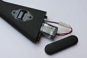 So, this little MP5 replica has definitely got some unique features, but as always what’s important is how it performs! The EGM A4 comes with a large battery compartment in the butt which really hearkens back to the days of NiMH batteries; a decent 9.6V which would last you all day was a cumbersome thing as you’ll see from the pictures, and the A4 even comes with a large Tamiya style connector; luckily I had a couple of old batteries lurking as I run LiPo batteries exclusively these days. Personally I’d have the “airsoft tech” change the connector to Deans and run it on a 7.4V LiPo which has less bulk and weight.