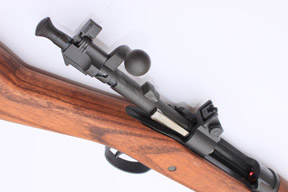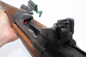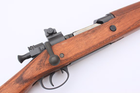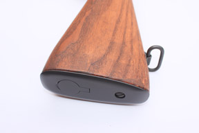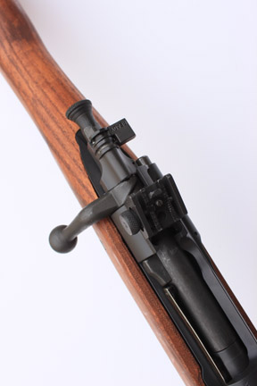 As I mentioned earlier the finish is absolutely superlative. All metal parts (and just about everything apart from the stock is metal!) are finished in a nice dull grey, and the real wood stock is finished probably more perfect than the real thing ever was! Sights are simple with a straightforward front blade and an M1903A3 style aperture sight, which is adjustable for both windage and elevation, on the rear of the receiver. If you want your own Springfield to reflect the pre-1942 model then you’ll probably want to change this to a forward mounted leaf sight, but this should be relatively easy to achieve once you source the correct part.