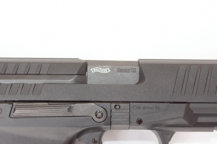The finish of the ‘polymer’ is absolutely flawless throughout, and all of the metal parts are equally well finished; even the ‘HI GRIP’ finish on the pistol grip is faithfully reproduced. The real Walther PPQ is 180mm long and weighs in at 695g (9x19mm, unloaded magazine); the airsoft version is spot on at exactly 180mm and weighs 732g, which is as close enough for me given that the C02 magazine gives a little more weight due to valves and the like.