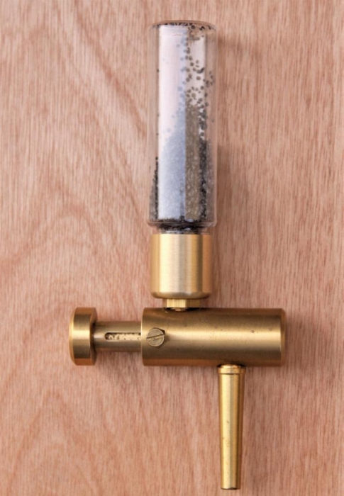 Suffice to say that the design of his dispenser is such that 20 consecutive ignitions of the powder charge (in practice you would presumably stop after one!) failed to cause the powder in the reservoir to ignite. So, only the small charge of powder (in the case of my revolver that is 5-grains of Herco) dropped from the fl ask caught fire, exactly the same as if it was poured from a phial. I feel just as safe loading from this dispenser as from a glass or plastic phial.