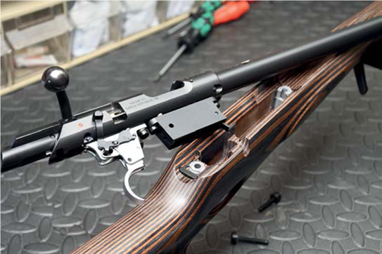 With a grippy, stippled recoil pad that locks into your shoulder, plus a stiff forend and stable bipod support, this gun is surefooted from prone or off the bench, where its heavier build seems most suited to the role of a varminter or precision rimfire. The underside of the butt offers another stud for a sling, positional support for a soft rear bag and a spacious curved profile that allows easy non-shooting hand access to manipulate that bag.