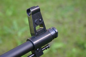 The dimensions of the German version match the real AK-47 and a quick glance in the box was enough to confirm to me it did indeed look like the real McCoy. The woodwork has been kept plain looking to match a real AK, and there is a fake gas tube along the top of the action. The .22 barrel sits inside a shroud which has the foresight attached to it. The safety on the gun is on the right hand side and - you guessed it folks - looks just like the huge lever on the real gun. On the real one when it is in the safe - the highest position - it covers up the ejection port. A hook on the front of the lever is used to hold the bolt in the open position on the cocking arm of the bolt. If the bolt is closed and the safety applied the rifle cannot be cocked, as the safety lever prevents the bolt coming back far enough to cock the action. The rear stock has to be fitted to the gun via two screws before the rifle is ready to use.