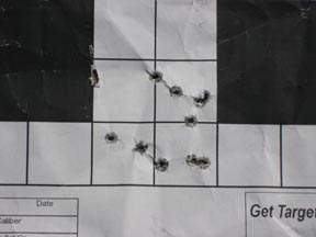 With CCI subsonic rounds I shot a 35mm centre to centre ten shot group off a bench at 50m. Due to the large curved magazine hanging down below the bottom of the action it is not an easy rifle to bench rest. However it is not a bench rest target rifle and the group size was not unexpected and not disappointing.