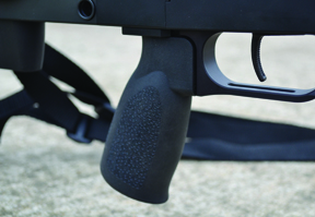 The reinforced chamber area of the barrel shows a simple hexagonal profile as it swells in diameter which allows a simple change with nothing more than a 27mm spanner, although removal unless by a qualified ‘smith is unwise. The action is flat-bottomed showing a recoil lug and a modest `v` shape on its lowest portion that engages with an identical profile on the stock. Fastened in place with bolts front and rear and using two slim, hard plastic rails in the stock effectively beds the rifle.