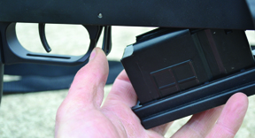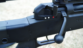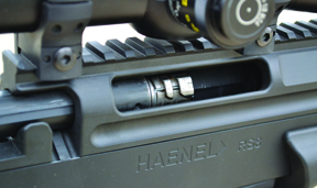 The magazine uses a double-column feed and is long enough to accept a 300 Win Mag. Typically Haenel have used a filler at the rear to suit the COL of the 308 Win. With a 2.955” platform length there is plenty of space for a longer COL if you reload, certainly more than the 2.845” on an AI-style system. No problems with feed at all, likewise ejection was positive and consistent dropping the empties about 12” away!