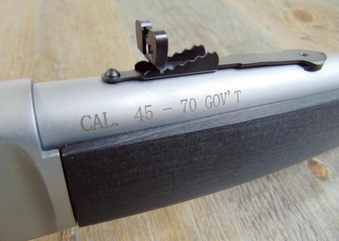 Moving forward to the receiver, the metal work, in fact, all of the metal work apart from the bolt and the sights are what Henry call ‘hard chrome plated’ and to me, it feels like a Cerakote finish but far smoother. The top of the receiver is drilled and tapped so if you want to throw on an optic then you can as a Weaver rail will fit. Moving up the rifle to the rear sight, it is a buck horn type and really suits this gun well, obviously fully adjustable and right up front is a brass beaded blade. I personally think that a silver coloured scope would make this rifle look totally awesome!