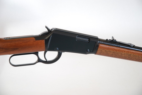 If I did not believe the Made in America legend on the box then I would say the H001 was the old Erma Werke EG 71 Wagon Master, a German design that goes back to the 1970s. None the less a slim and elegant rifle with an aluminium receiver with integral 3/8” dovetail and an adjustable, semi-buckhorn rear sight and a fixed, ramped blade up front. There’s some reasonable walnut too with a straight-hand butt with plastic plate and forend.