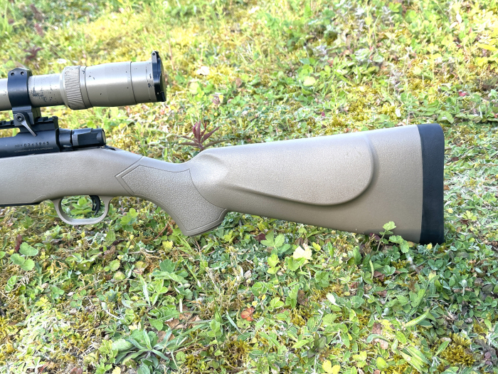 Opening the box showed a reasonably good-looking and handy design, certainly more attractive than the Remington 710, which was ‘butt ugly!’ Most noticeable was the flat dark earth (FDE) sporter stock, the slim, semi-fluted barrel (threaded for a moderator), and a pre-fitted Picatinny rail. Also, a detachable box magazine. Please bear in mind, this is a sub-£600 rifle.