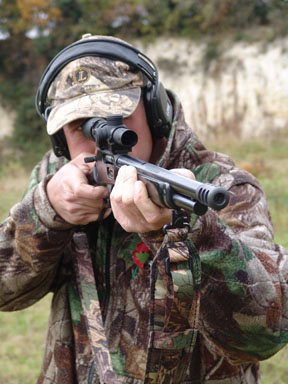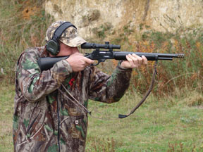 To turn the 1895SS into the Piginator merely requires the barrel to be chopped, which entails it being removed. Once off Andrew re-crowned it and threaded it up for a Holland ‘hi-gas’ muzzle brake; an essential item as I discovered. With the stock painted black, I dug out a short range scope in the form of an old Simmons 1.5-5x20 Whitetail Classic. This little compact with its medium Dual-X reticule is still a great performer after years of service and a cheap option too.