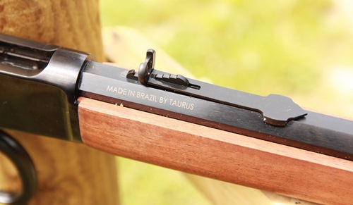The most unusual aspect of the design is the safety catch, which was never a feature of the Puma or original Winchester 92. These rifles relied purely on a half cock hammer to give a safe carry and Rossie still incorporates it. However they now fit a firing pin block system, which consists of a small, L-shaped lever - top rear of the bolt. It rotates through 90°; on SAFE it points to the right with a green S exposed, to FIRE swing it to 6 o’clock and a red F appears. It looked familiar as it’s a Taurus design that I first saw on their classic pump-action and semi-auto Remington and Browning 22 rimfire reproductions.