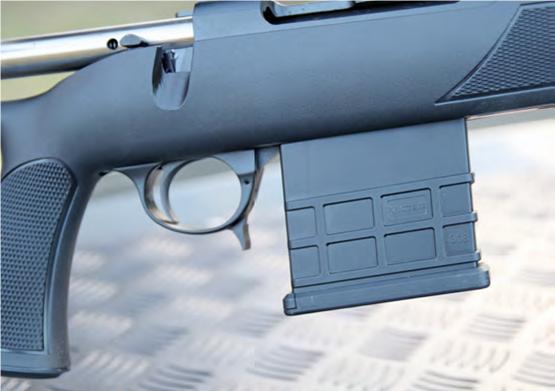 The bolt is near pure Remy 700, with twin, forward lugs, enclosed bolt head/face and a plunger-type ejector, though uses a broad claw-type extractor. It cocks on opening and there’s a large cocked action plunger at the rear of the shroud. The release catch is rear/left of the action and presses in. The handle is cranked like a 700s’ but in this case, has a useful, enlarged and lengthened knob, which aids operation. The safety is a 2-position roller-type located rear/right of the action: forward to FIRE and rear for SAFE with bolt operation; nothing to see here!