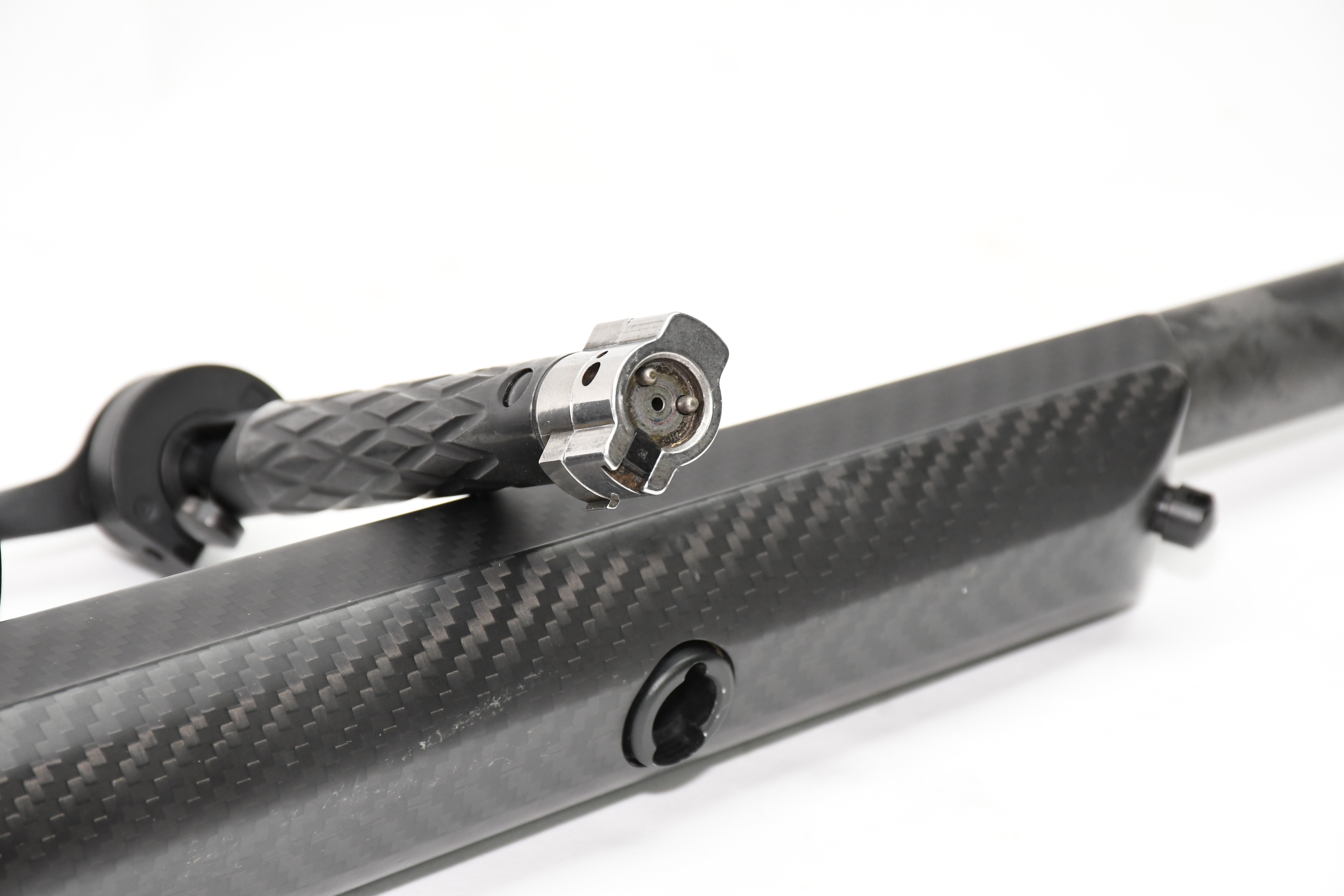 The bolt handle extends 58mm from the shaft, which shows similar coatings and diamond fluting to reduce weight, ease passage, and prevent action lock-up in inclement conditions. A 23mm carbon-fibre ball tip finishes the handle, so it won’t freeze onto your fingertips in cold weather.