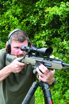 Picatinny makes life simple and there is plenty of it for day scopes or any electronic night vision/thermal options. Zeroing offered no challenges whatsoever and the thermally stable barrel maintained significantly better than MOA capability, from the first shot to the last. I have never had a bad Steyr barrel. The handling is slick, and I liked the fact you can have +1 in the chamber if necessary, yet even better was the fact that a single cartridge dropped through the ejection port would feed smoothly straight to the chamber. Magazine feed, firing, and ejection were all faultless, and I liked the shorter than 90 degree bolt throw.
