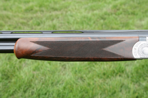 The wood on the test gun was well figured as already noted. The stock finish was what most real shooters will want - matt 'oil' with well cut chequering in traditional panels (the latter in all probability accomplished by laser). The thin wooden butt sole is practical for a game gun too, because it is unlikely to cause a glitch in the mount. The stock dimensions were on the money. The length from the middle of the trigger to the middle of butt sole was standard for a Beretta game gun at 14 5/8" (there is 14” of solid wood - which would allow for 15” with a 1”/26mm pad). There was an extra 1/8" to heel and 3/8" to toe - standard Beretta dimensions and well suited to most people (though in an ideal world I would like to see 3/16” extra at heel). Drop was sensible at comb, measuring 1 3/8" to the axis of the rib, but just a little low at heel where the measurement was 2 1/4" (2 1/8” would have been my advice). The stock was good though and any criticisms I might have are small ones.
