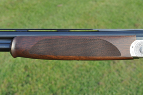 Game scenes and the cleverly applied new finish apart, the action on the test gun has not changed much when compared to previous models. It is the well proven low-profile Beretta - bifurcated lumps, conical locking lugs etc. The trigger is recoil operated and there is the usual barrel selector on the safety. The trigger blade is plain in form and matt gold plated. Pulls are pretty good with only the slightest sign of creep (though the quality of pulls has never been the great strength of this design). Ejectors are powerful and well timed. Which only leaves us with a few more words on the woodwork. The stock has a well proportioned, tapered, comb and a snabel forend as noted. Length of pull is 14 3/4” with the butt plate. Drop is 1 1/2” at comb and 2 1/4” at heel – typical of a Beretta game gun.
