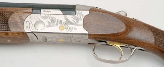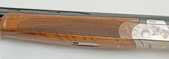The overall finish has brush polished faces, interspersed with geometric swirls and the addition of woodcock and partridge rising. There are also Beretta logos, which are accented in gold.