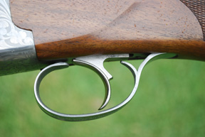 The selector on the Bettinsoli’s top strap, which functioned positively and is a sensible size, is of the Browning pattern too. This is my favourite style because it is the most practical in the field. The trigger is recoil activated on the usual bob-weight system and the pulls were acceptable. I also liked the plain steel (non-adjustable) trigger and the shape of its blade. The gun is mechanically well proven and the aesthetics of the action – and especially the scroll engraving - are eye catching. I would love to see this gun produced with the same beautiful engraving without the inlays.