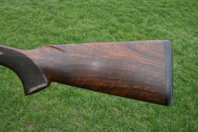 The wood on the test gun was very nice too. The stock had a full pistol grip with slight palm swell. The Schnabel forend was of modern form (generally the gun manages to create a classical effect with modern shapes and manufacturing methods). The price tag was something just over the 2K mark. This attractive gun weighed in at about 8lbs - ideal for a 30" competition clay buster.