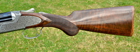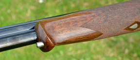 The woodwork is well finished, the chequering at 26 lines per inch allowing a good purchase as does the semi pistol grip, another refinement not often found on guns purporting to be for field use. In years gone by I lusted after English stocked over and unders, having shot with one as a youth but the subtle yet effective semi pistol is in my opinion a good compromise though I would still like to try it with a straight stock.