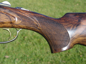The Triwood process results in a very pretty stock that would fool most people (but don’t try planing or sanding it!). Quality of finish is generally very good. The acrylic varnish looks pretty tough and it is not too glossy. My only niggle concerns the wood to metal fit around the top tang. There is quite a gap to either side. One sees this on many factory made guns (sometimes it occurs as the stock bolt is tightened) but it could let in more moisture than is desirable.
